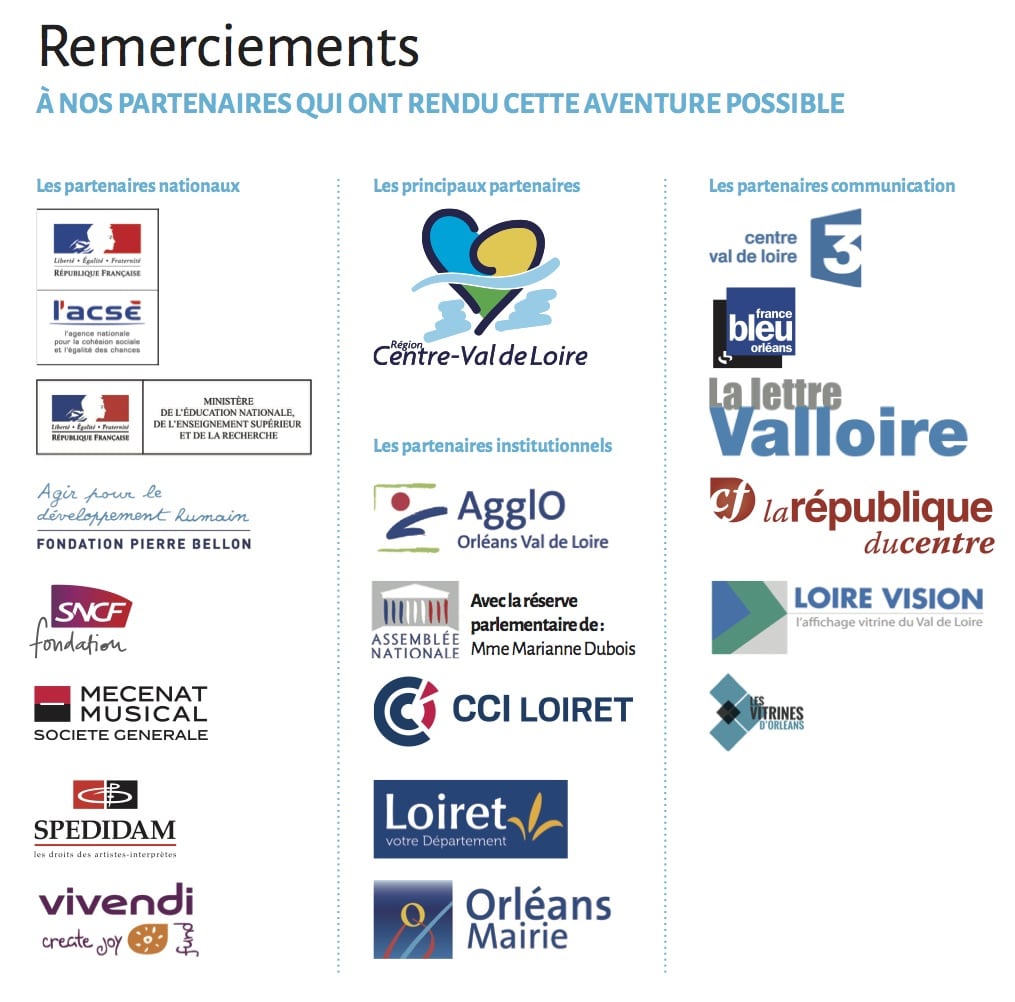 Organisation et promotion de la répétition générale : lycée Voltaire, d’Orléans (proviseur : Guy-Roger Meitinger, formateurs et encadrants : Dominique Aubrun, Sophie Cauliez, Fadila Demik, Delphine Urban, Caroline Vard).
